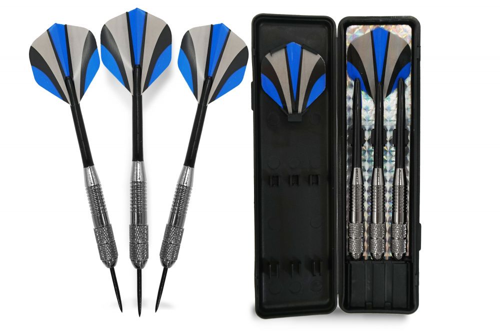 Комплект состоит из 3 баррелей, 3 хвостовиков, 3 оперений и кейса. Разборная конструкция дротиков позволяет заменить его хвостовик и оперение по мере изнашивания оборудования.