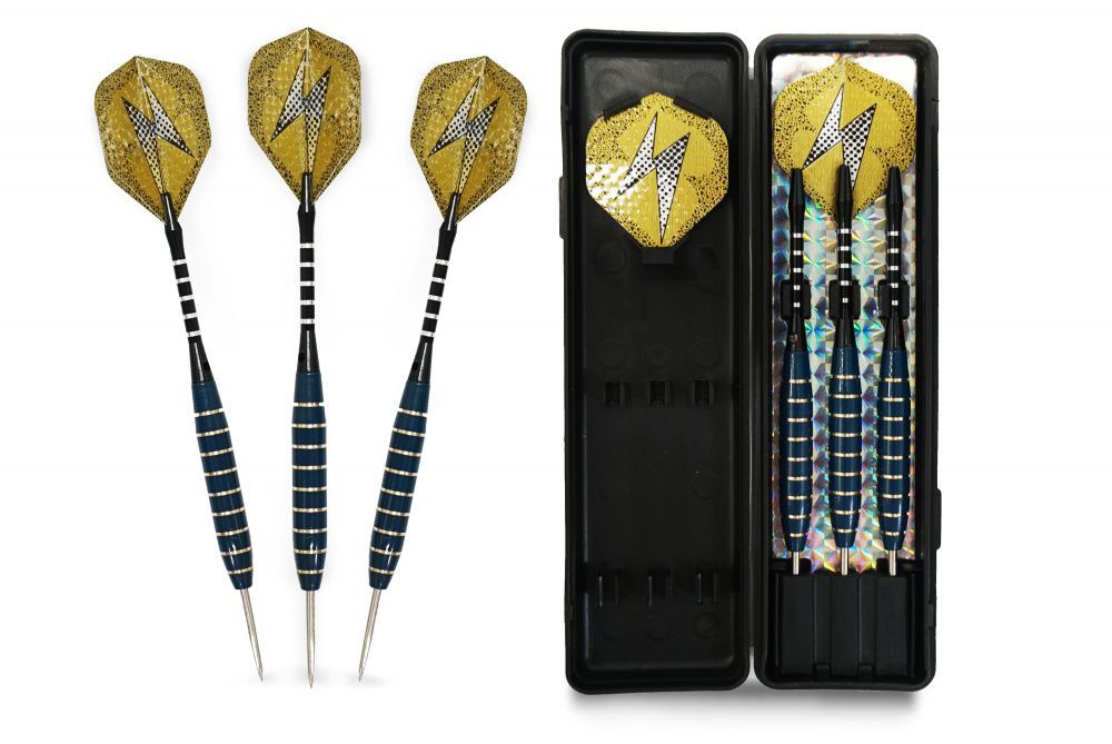 Комплект состоит из 3 баррелей, 3 хвостовиков, 3 оперений и кейса. Разборная конструкция дротиков позволяет заменить его хвостовик и оперение по мере изнашивания оборудования.