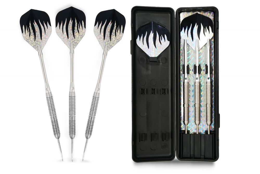 Комплект состоит из 3 баррелей, 3 хвостовиков, 3 оперений и пластиковый кейса. Разборная конструкция дротиков позволяет заменить его хвостовик и оперение по мере их изнашивания.
