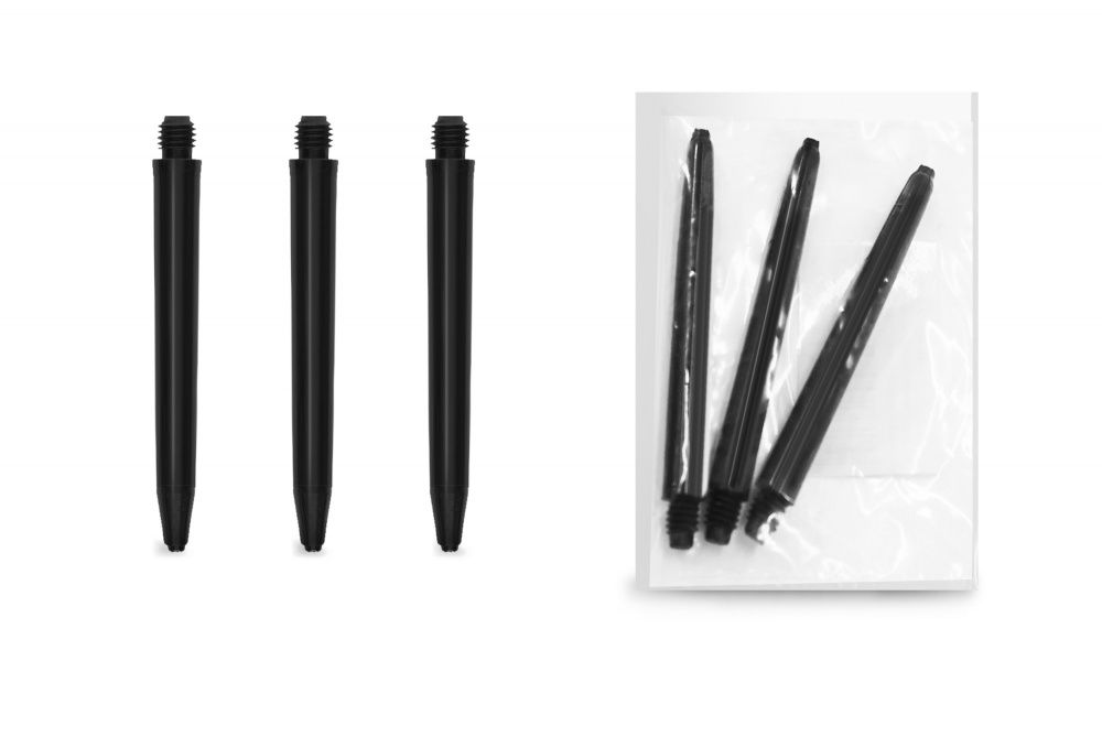 Набор нейлоновых хвостовиков подходит для среднего уровня игры. Комплект включает в себя три непрозрачных хвостовика, изготовленных из нейлона черного цвета. Каждый хвостовик универсален, имеет стандартную резьбу и длину 48 мм.