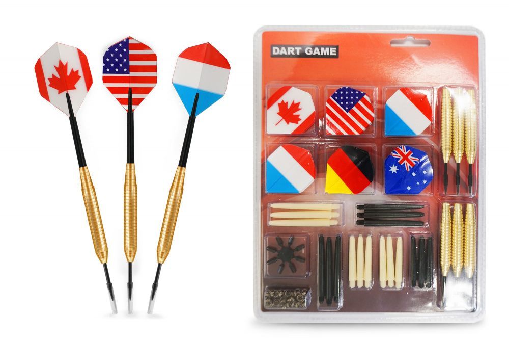 Комплект состоит из 6 баррелей, 18 хвостовиков, 18 оперений, 8 протекторов. Разборная конструкция дротиков позволяет заменить каждую из его составных частей по мере изнашивания оборудования.