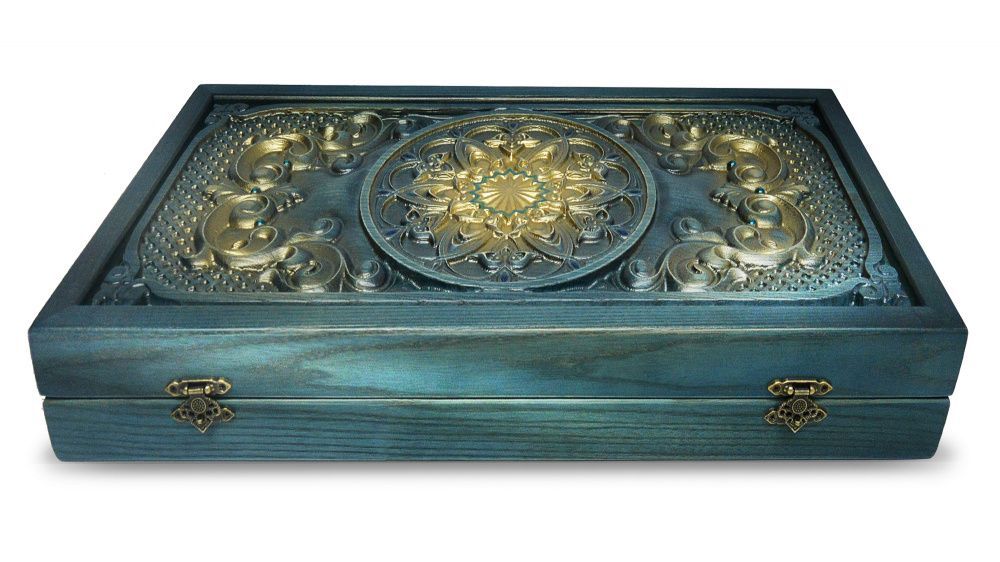 Нарды-шашки Восток 25 (Бирюза, позолота (нарды, шашки))